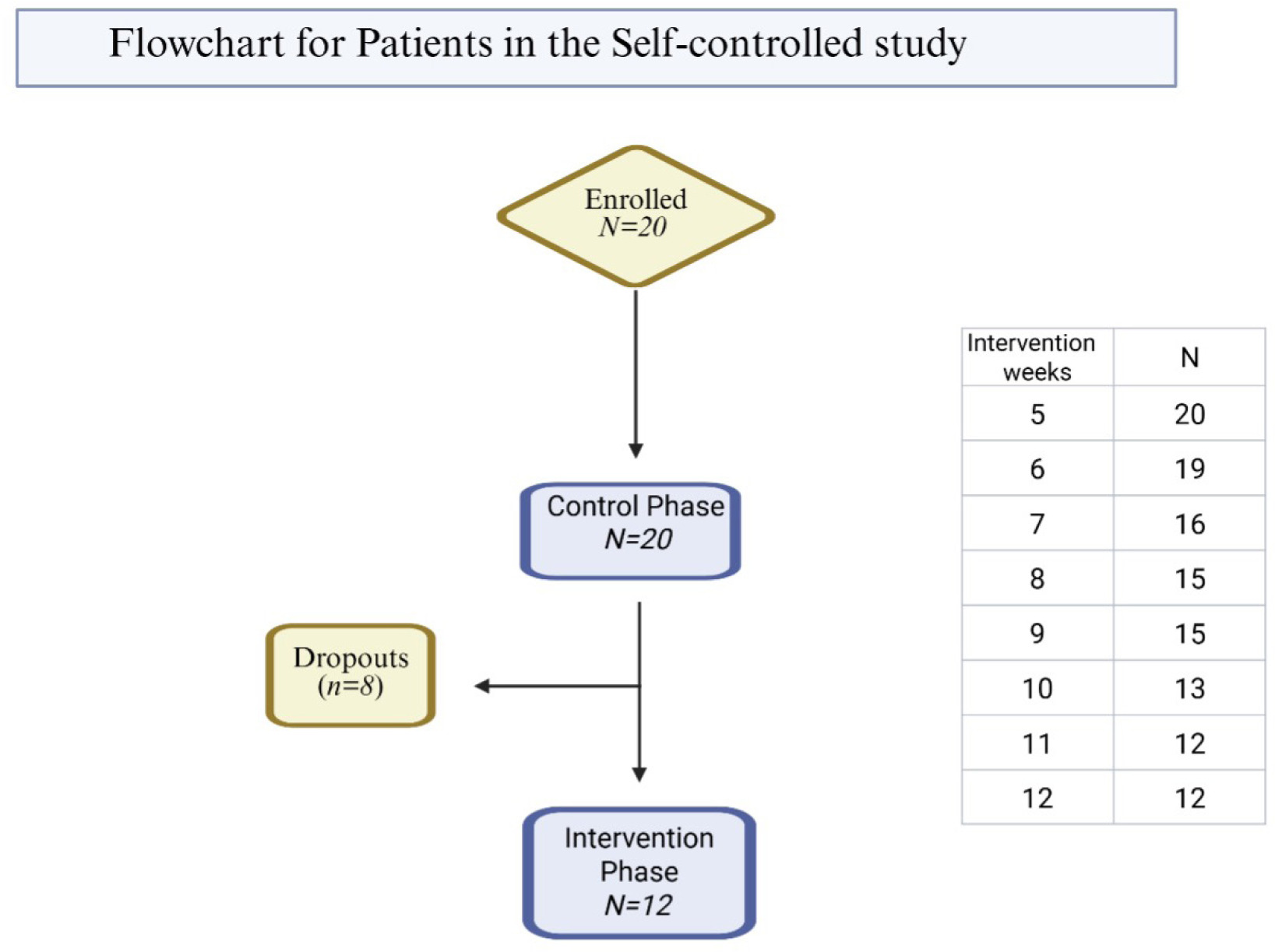 A case-available sensitivity analysis was conducted using the per-protocol subset, which included participants up to their last valid observation before deviation or dropout. In the “censor-at-deviation” approach, only data before the deviation were included, excluding subsequent measurements. This ensured each participant contributed valid control and early-intervention data despite incomplete follow-up. Analyses were conducted using this approach, including all participants who contributed valid data up to their last available observation. No imputation of missing data was performed; analyses were conducted using available observations at each time point. Correlation analyses were restricted to complete cases. Given the small sample size and non-normal distribution of several outcomes, non-parametric bootstrapping was used to support inferential analyses. All primary and secondary statistical tests were bootstrapped using 1000 resamples with replacement to estimate confidence intervals and assess the stability of effect estimates. Bootstrapping was applied as a robustness check and did not replace the primary analytical framework. Dropout information and reasons for withdrawal are detailed in Supplementary Table 1.