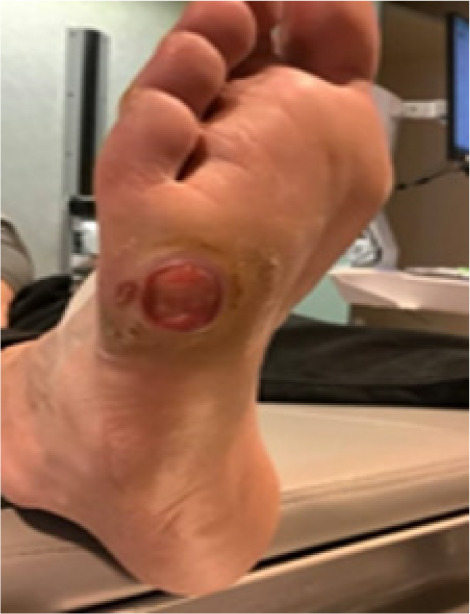 FIGURE 4 Preoperative image showing plantar ulceration over collapsed midfoot.