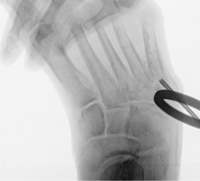 FIGURE 11 Postoperative image at 12 weeks showing healed lateral forefoot with corrected alignment.