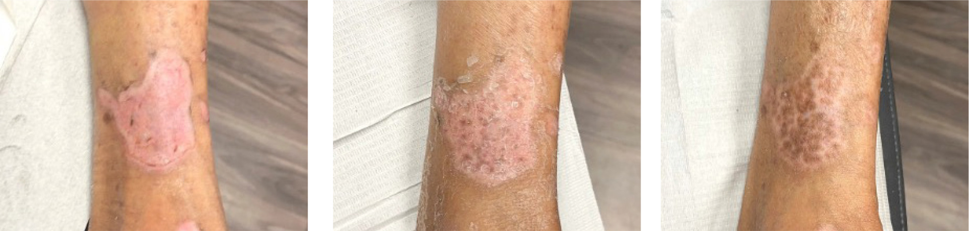 Sequential images shown in Figure 1 document the trajectory of wound healing from SV-1, TV-1, and HCV in a patient assigned to the DLAG with SOC treatment arm.