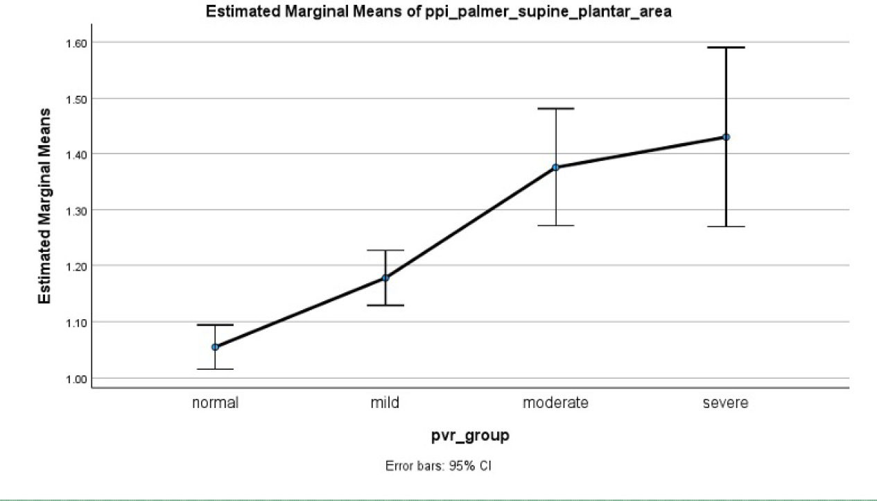 TABLE 2 Estimated mean plantar-palmar index (PPI) by pulse volume recording (PVR) classification